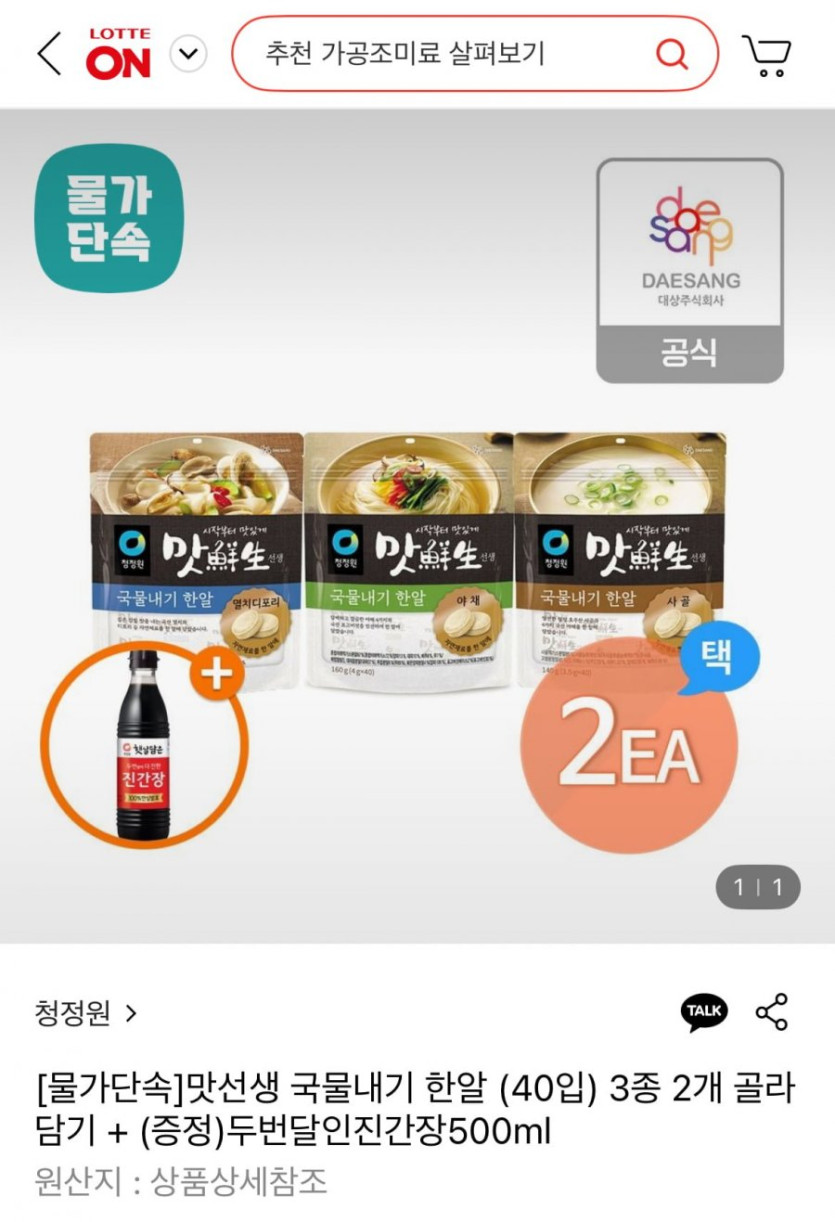 육수 한알에 160원 꼴이고 간장 사은품 증정있네요