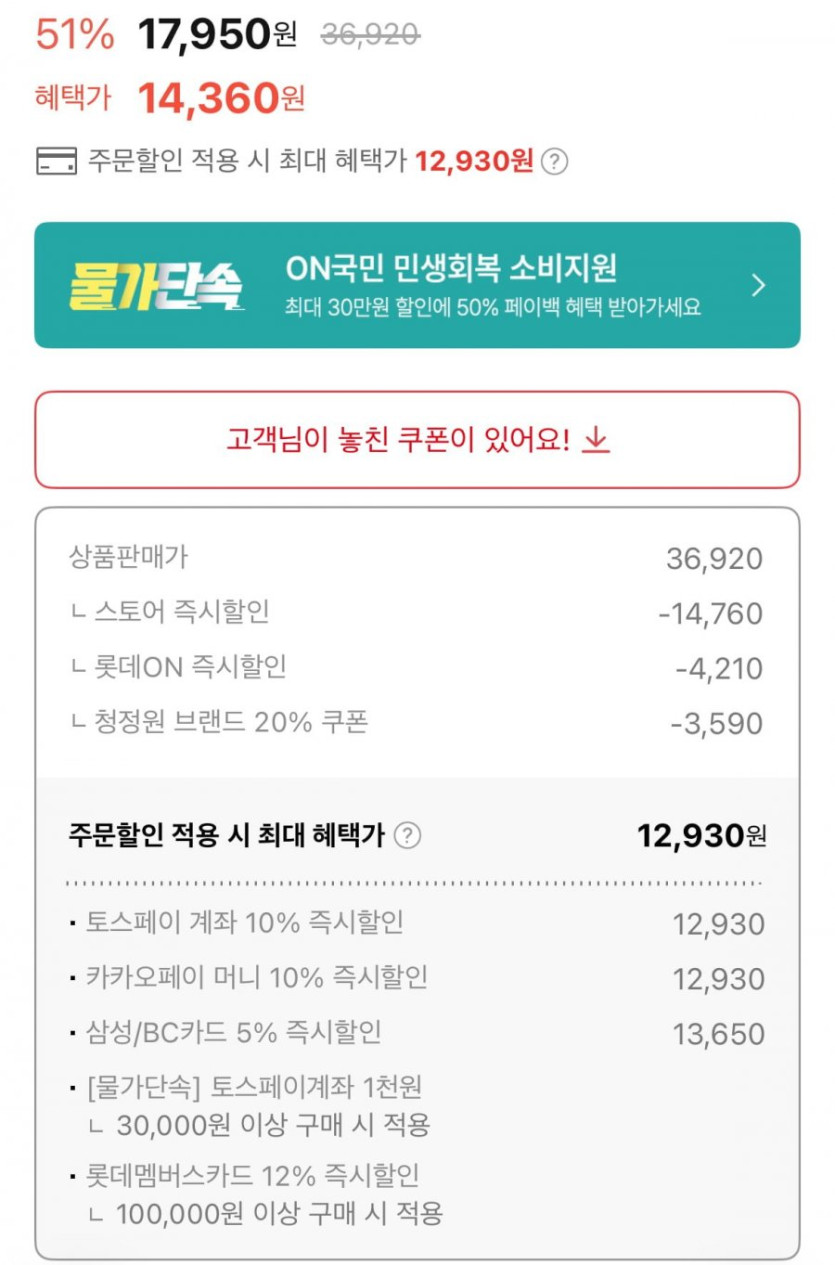 쿠폰 20프로 적용하고 카할까지 받으면 가격 나옵니다