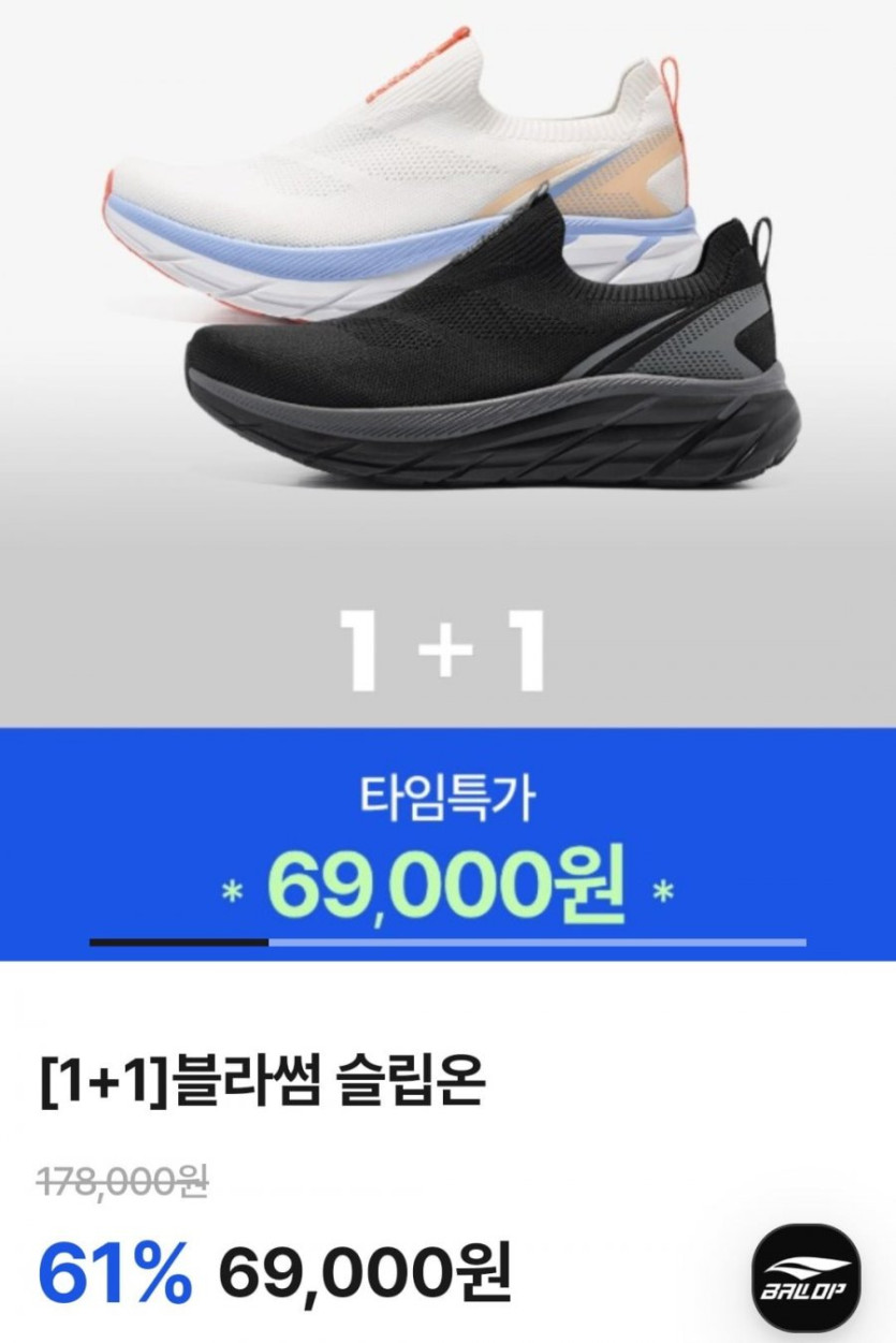 7월 위크 타임특가로 슬립온, 레디워크등 1+1 69,000원으로 가격 좋습니다 1개 가격은 39,000원이네요