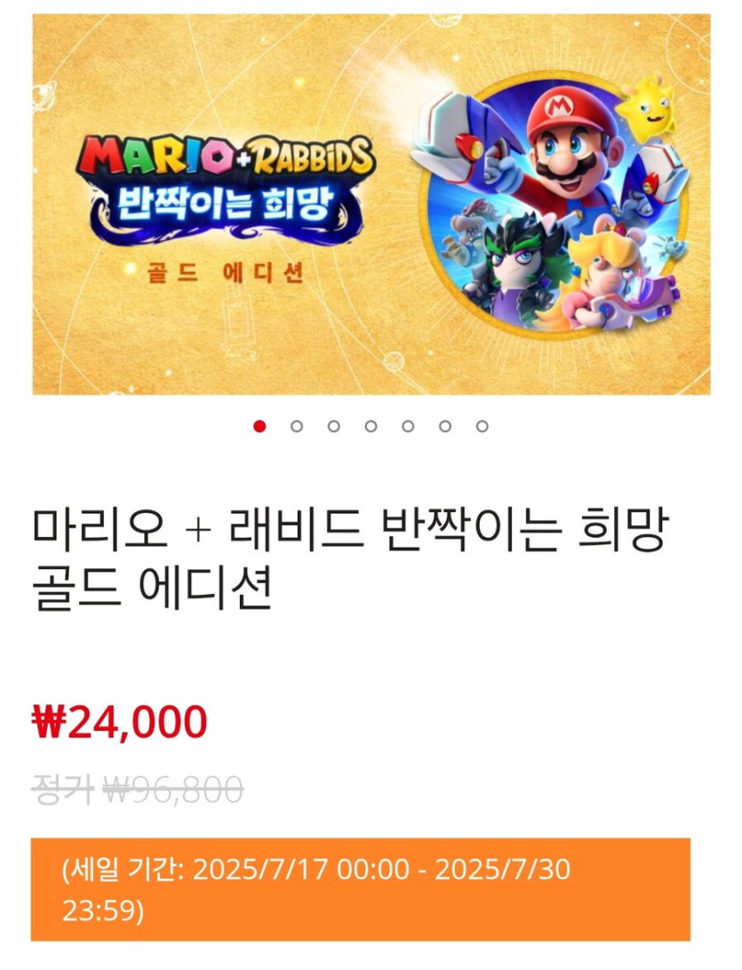 [게임S/W] [닌텐도스토어]닌텐도스위치 마리오+래비드 반짝이는 희망 골드 에디션 24,000원 작성자 정보 초코 작성 작성일 2025.07.17 18:45 컨텐츠 정보 36 조회 목록 본문 다시 세일하네요 저번에 놓쳐서 이거 할인만 기다렸어요 관련 정보: https://store.nintendo.co.kr/70070000014599 관련자료 이전 [게임S/W] [H2mall] H2mall 여름 할인 프로모션 작성일 2025.07.17 18:52 다음 [옥션]바리스타룰스 무라벨 커피 아메리카노/디카페인 350ml 20입 (15,950원/무료) 작성일 2025.07.17 05:58 댓글 0 등록된 댓글이 없습니다. 로그인한 회원만 댓글 등록이 가능합니다. 목록