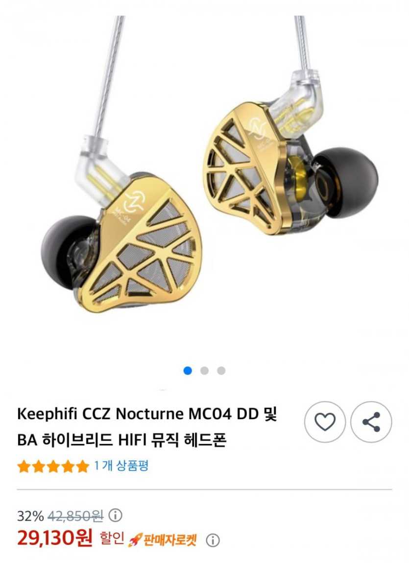 [쿠팡]Nocturne MC04 DD 및 BA 하이브리드 HlFl 뮤직 헤드폰 (29,130원/무배)