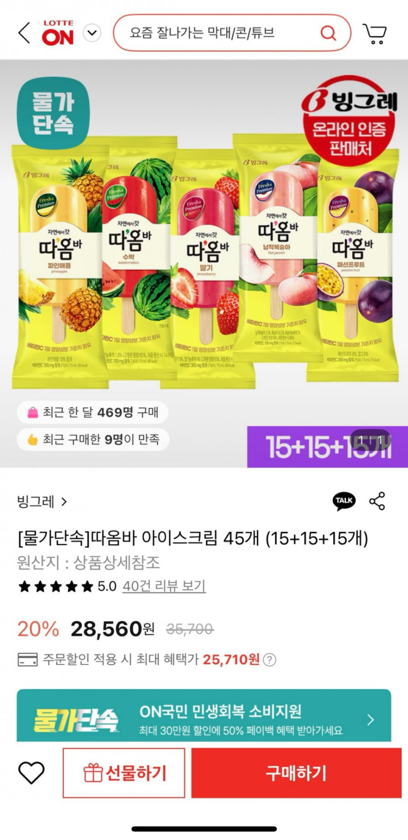 [롯데온]따옴바 아이스크림 15+15+15개(24,940원/무료)
