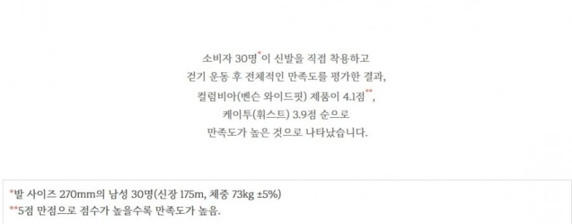 한국소비자원 공식블로그에 나온 트레킹화 평가지수이고