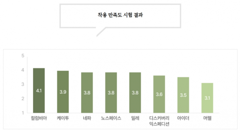 아웃도어 8개 브랜드 대표 트레킹화를 대상으로 실험한 결과라고 합니다