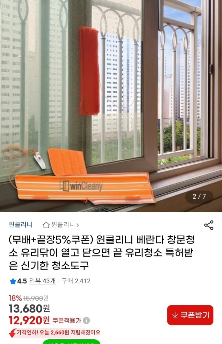 [지마켓]베란다 창문청소 유리닦이 청소도구 (12,920원/무배)