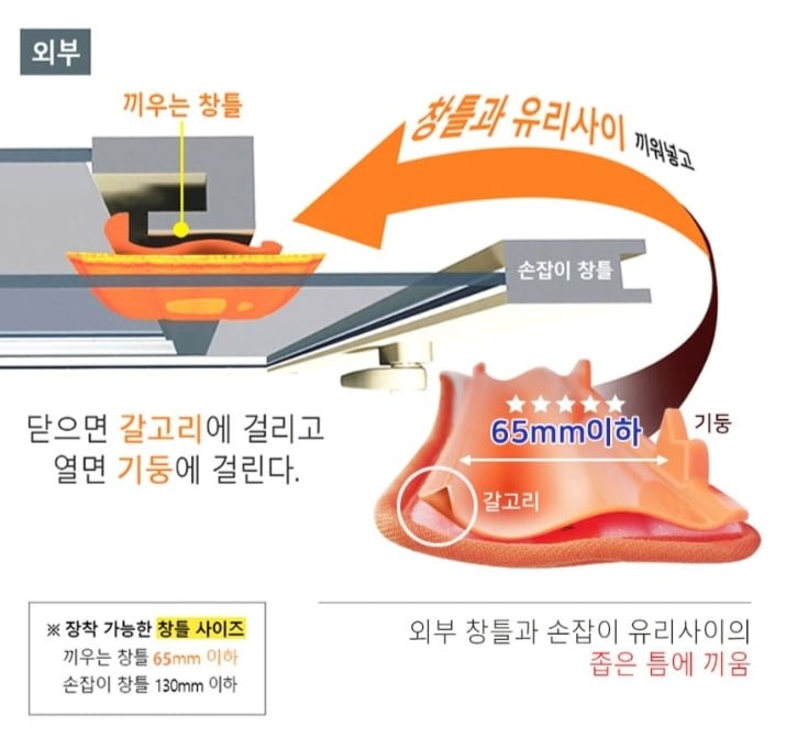 창틀과 유리 사이에 끼우고 열고 닫으면 닦입니다.