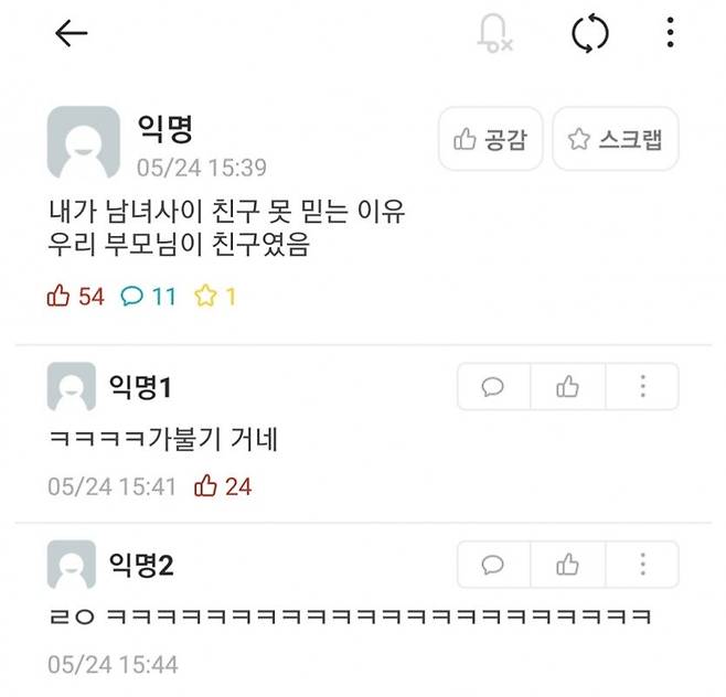 내가 남녀사이 친구를 못 믿는 이유 작성자 정보 헐 작성 작성일 2025.05.21 10:10 컨텐츠 정보 601 조회 목록 본문 관련자료 이전 오늘도 매우 실망한 대대장.jpg 작성일 2025.05.21 10:17 다음 딸이랑 싸운 부장님이 받은 화해 선물 작성일 2025.05.21 10:10 댓글 0 등록된 댓글이 없습니다. 로그인한 회원만 댓글 등록이 가능합니다. 목록