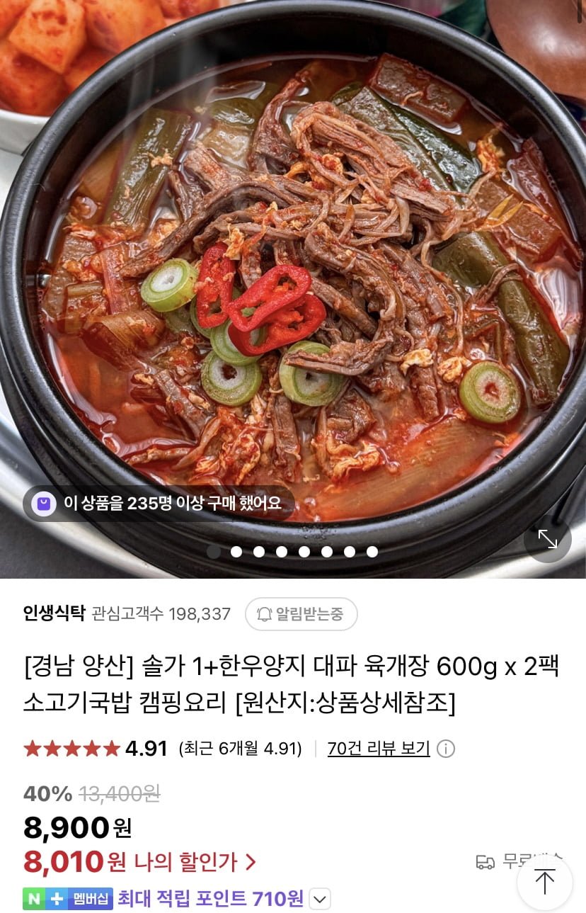 [네이버]솔가 한우양지 대파 육개장 600g 2팩 (8,010원/무배)