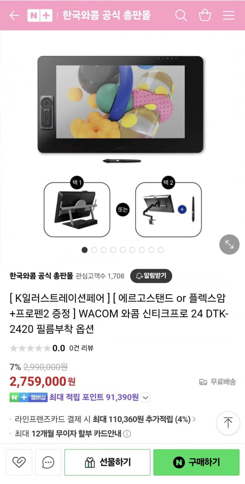 [네이버]와콤 K일러스트레이션페어+정품 사은품 증정 (2,759,000원/무료)