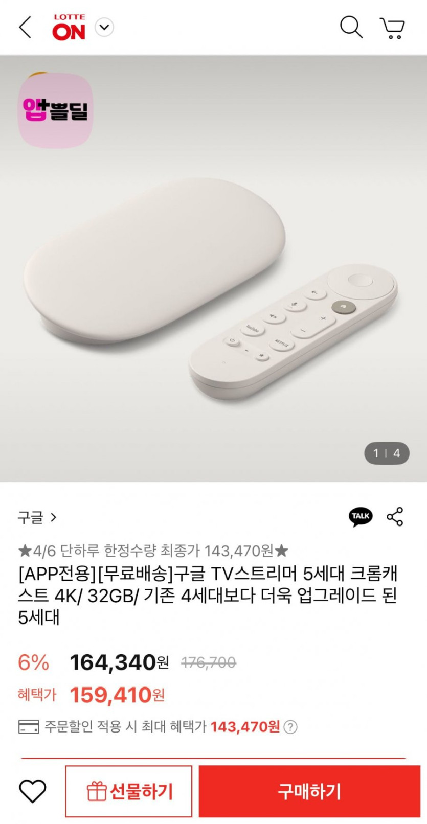 [롯데온]구글 크롬캐스트 5세대 4K (143,470원/무배)