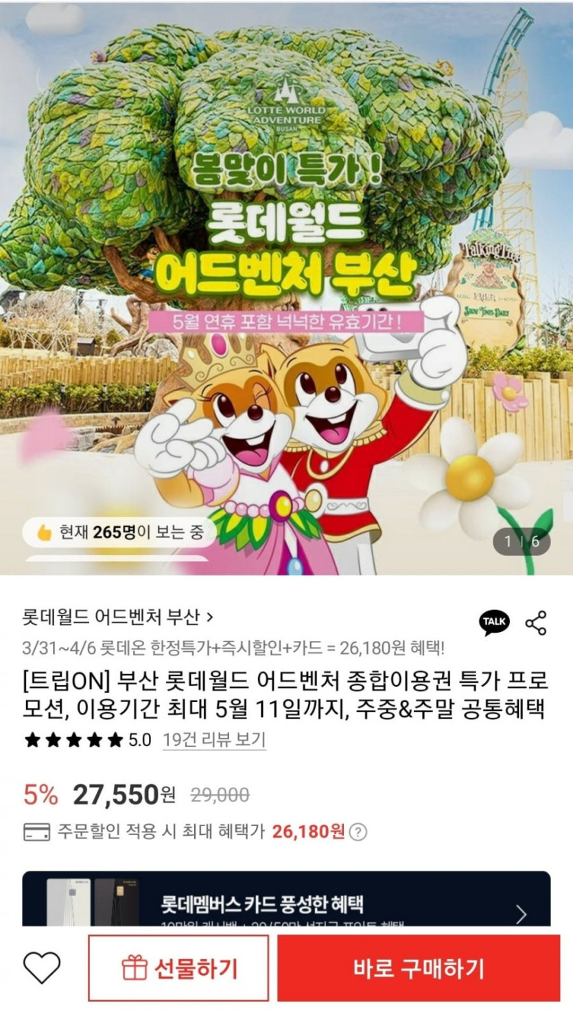 [롯데온]롯데월드 어드벤처 부산 (27550원/무배)