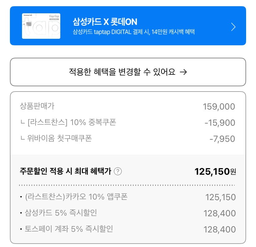 10% 앱쿠폰 받고 첫구매면 쿠폰생겨서 12만원대 나옵니다