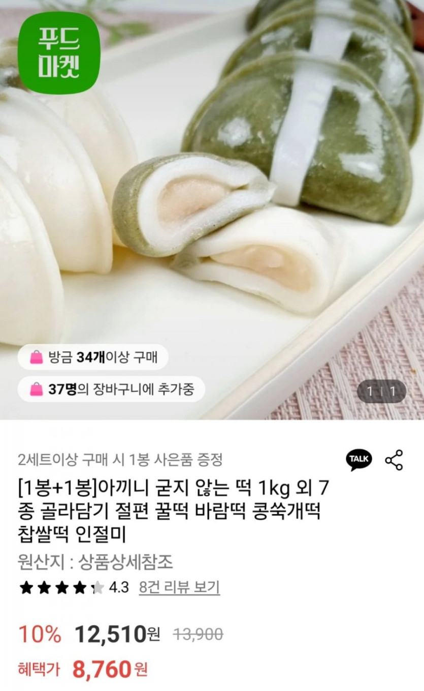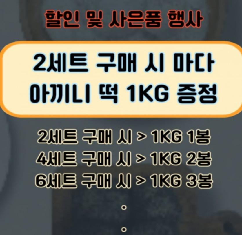 2세트 구매별로 떡 1kg 추가 증정되는데