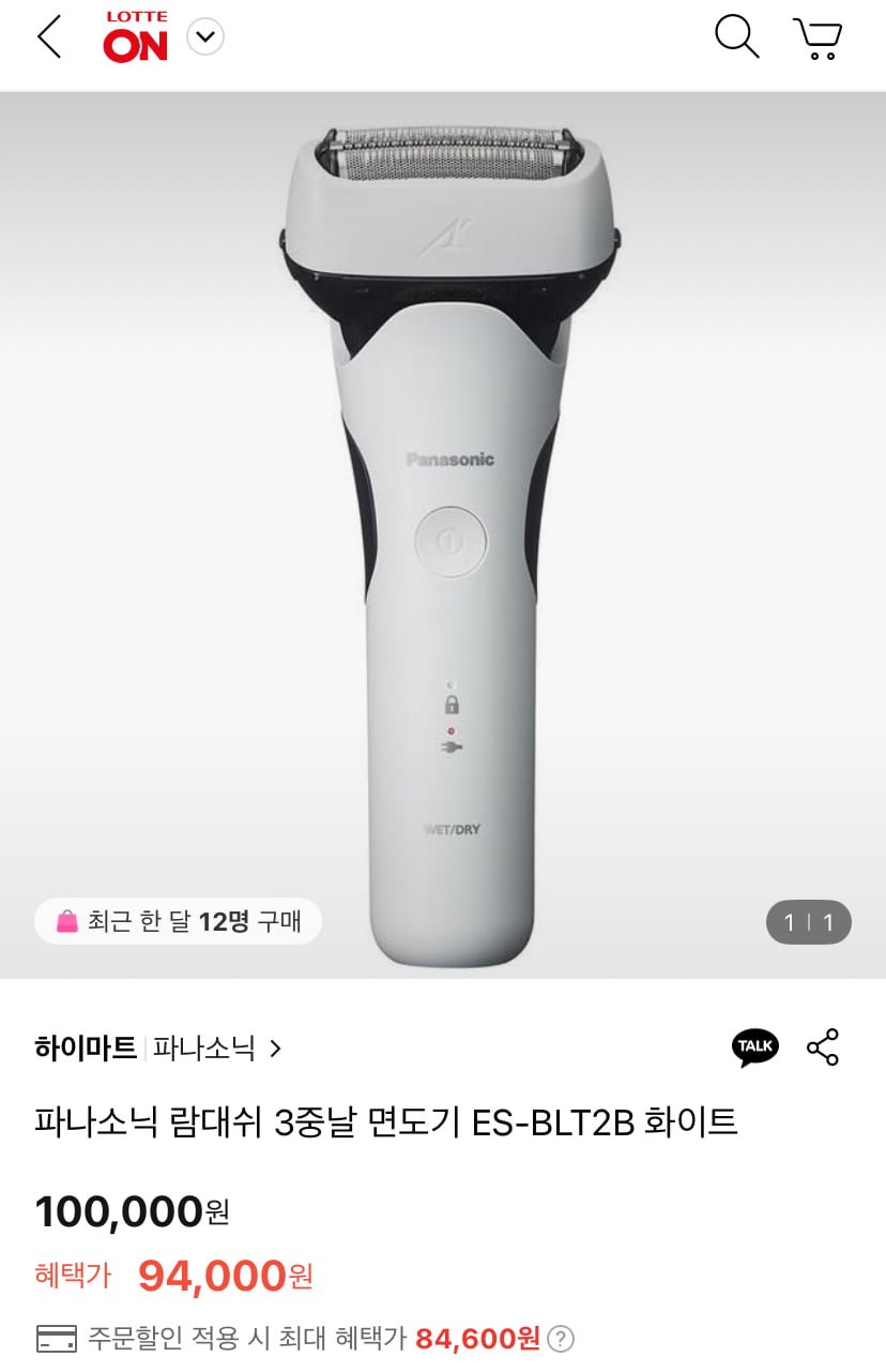 [롯데온]파나소닉 람대쉬 3중날 면도기 ES-BLT2B 화이트 (84,600원/무료)
