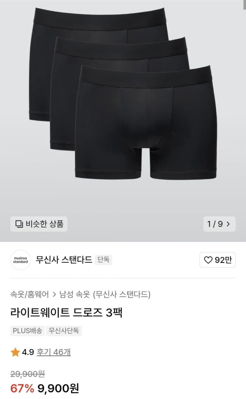 [무신사]무신사 스탠다드 라이트웨이트 드로즈 3팩(9,900원/무료)