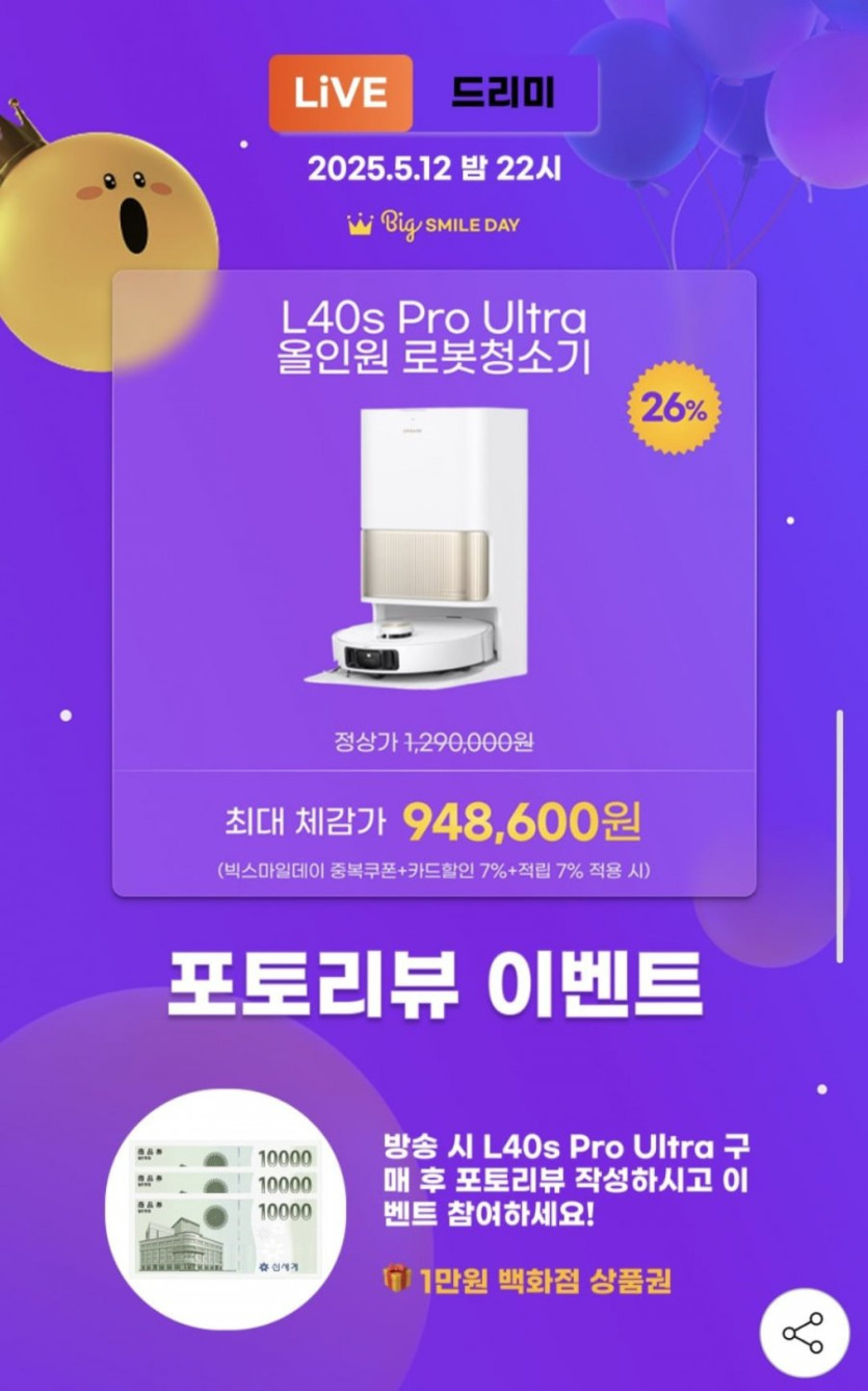 [지마켓]드리미 L40s Pro Ultra 로봇청소기 (카드 1,020,000원/무료)