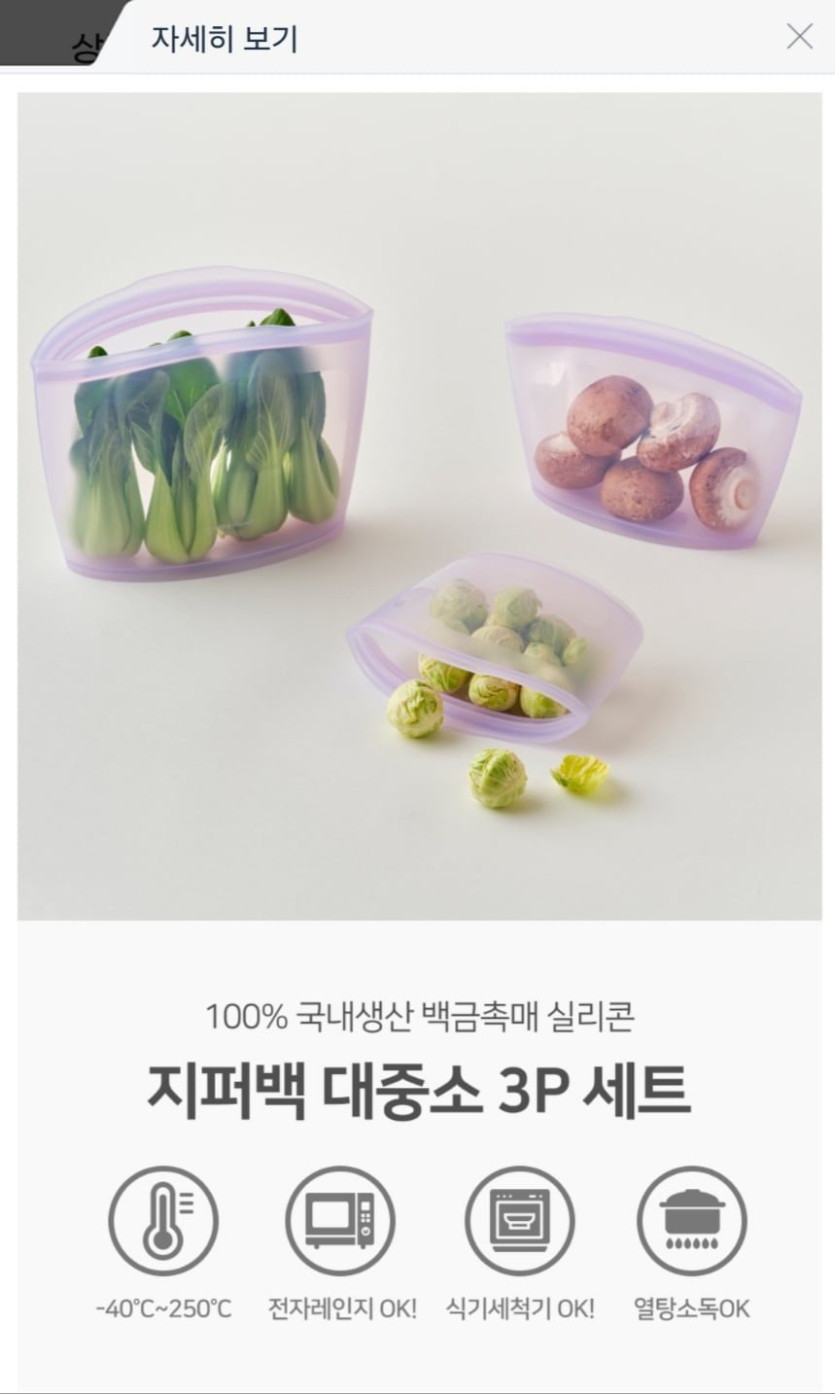[지마켓]실리팟 지퍼백 3종세트 (28,630원/무료)