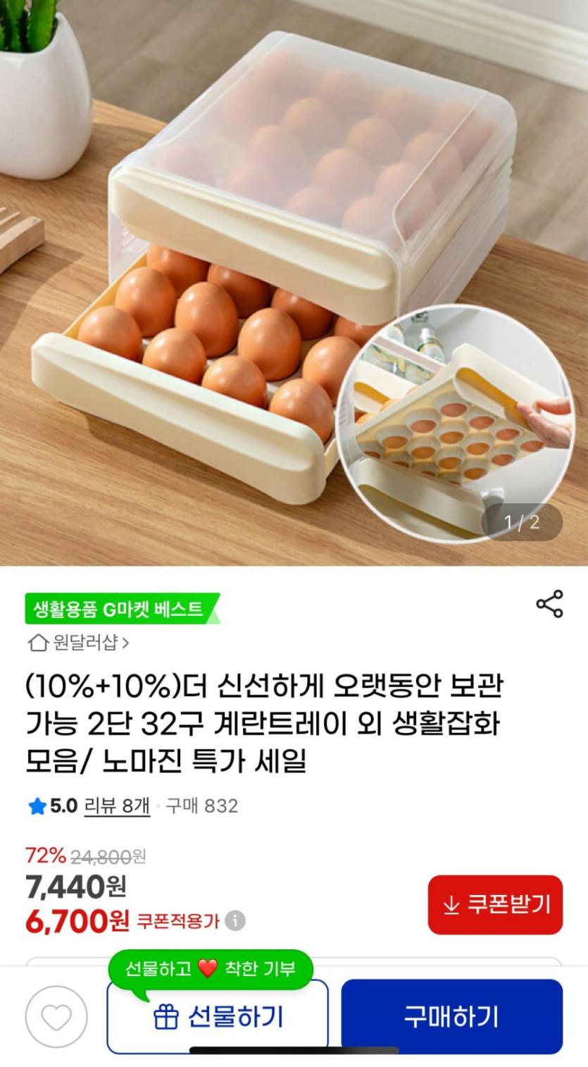 [지마켓]2단 32구 계란트레이 (6,700원/무료)