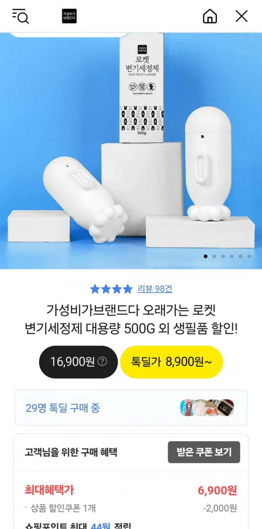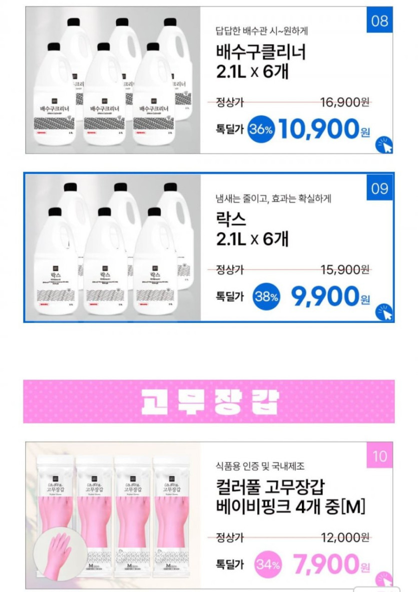 [카카오]락스 2.1L x 6개 외 생필품 할인전 (선착쿠폰 7,900원 외 / 무료)