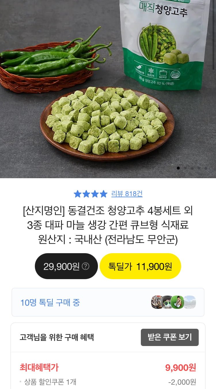 [카카오톡]동결건조 청양고추 4봉 세트 외 3종 대파 마늘 생강 (9,900원~/무료)
