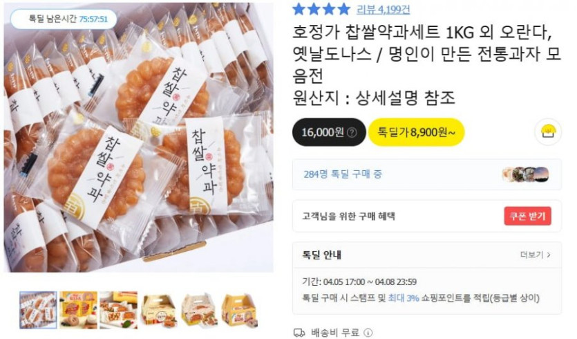 [카카오]호정가 찹쌀약과세트 1kg 오란다 도나스 등 (8,900원~/무료)