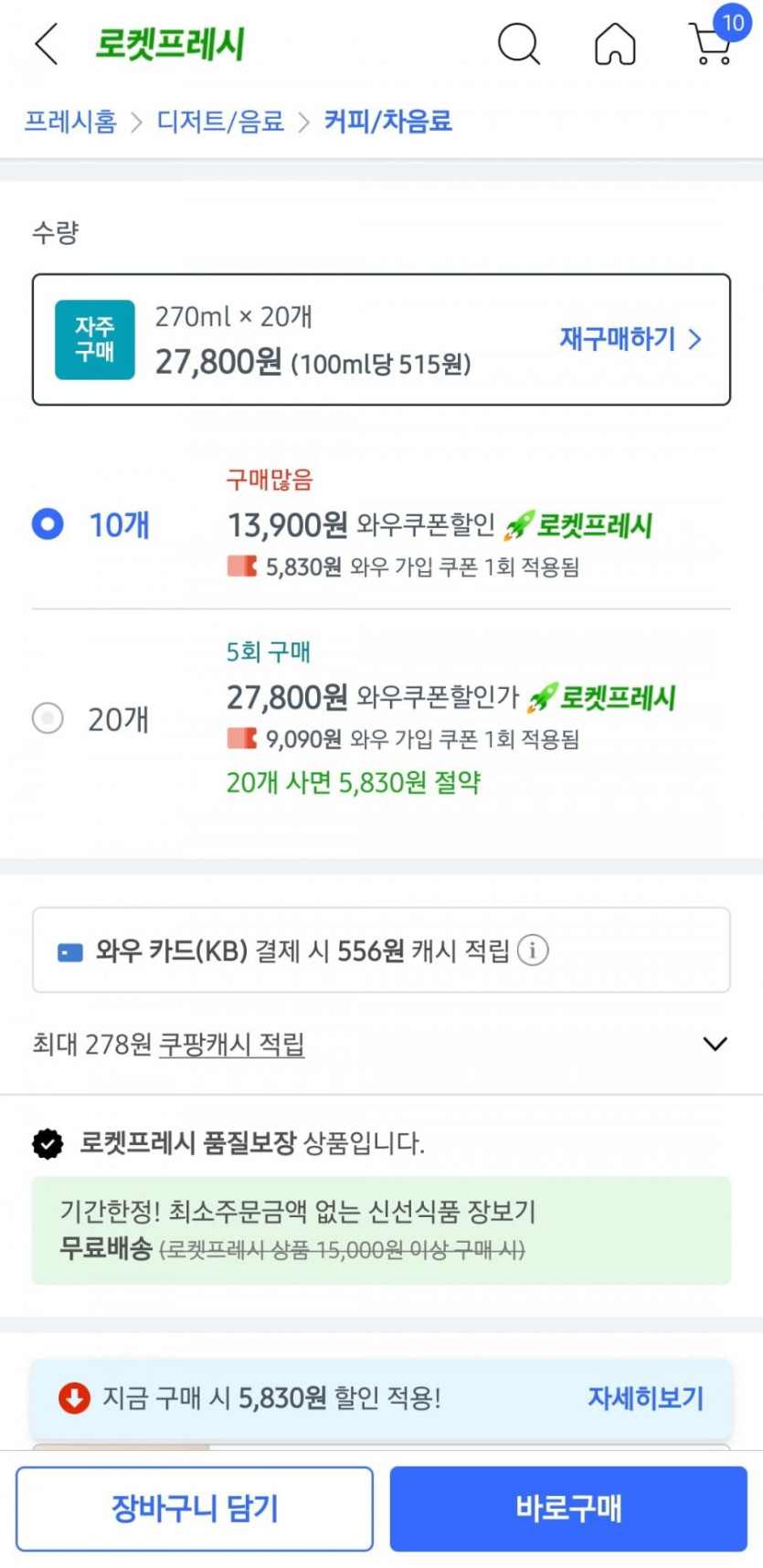 로켓프레시라 와우멤버십1.5만 이상 배송무료인데, 제 기준으로는 1세트도 무료되네요