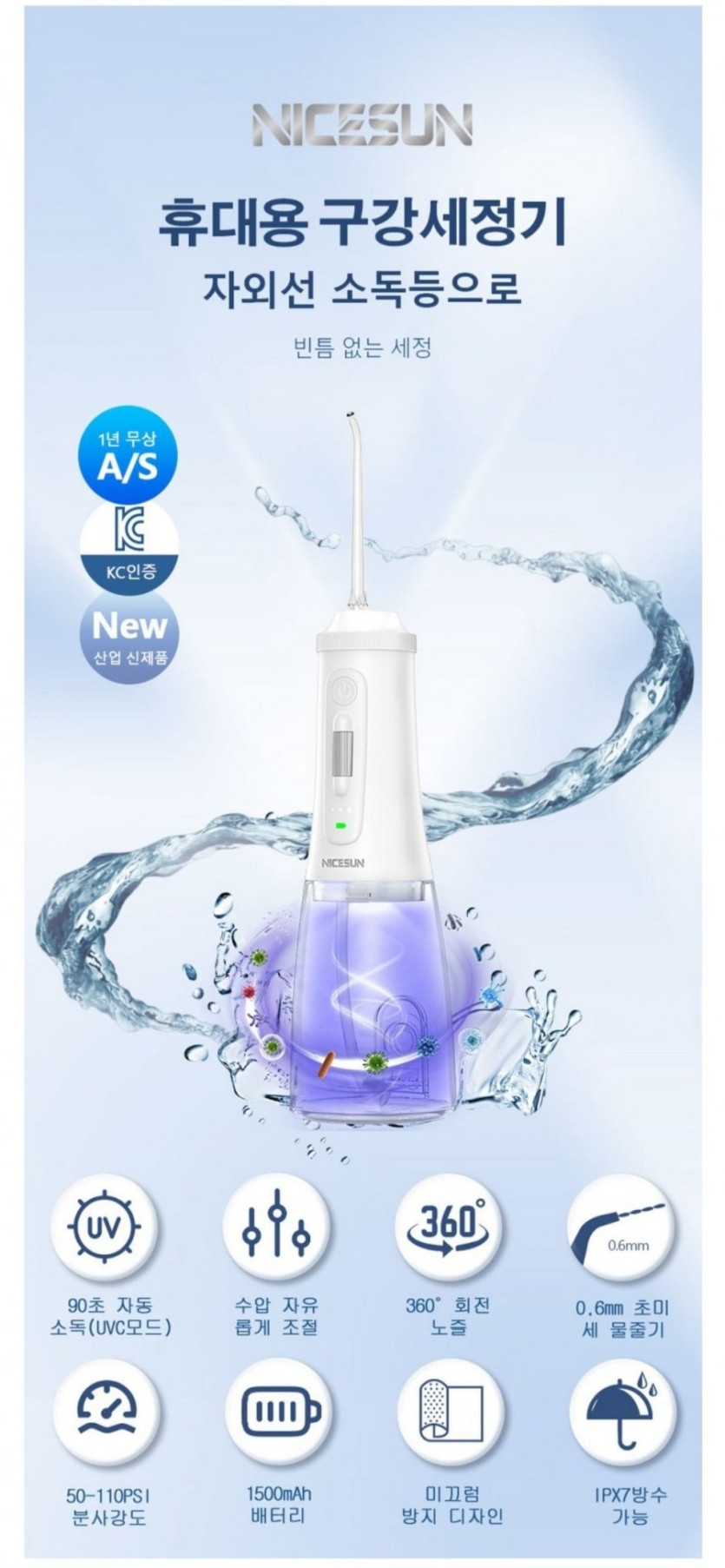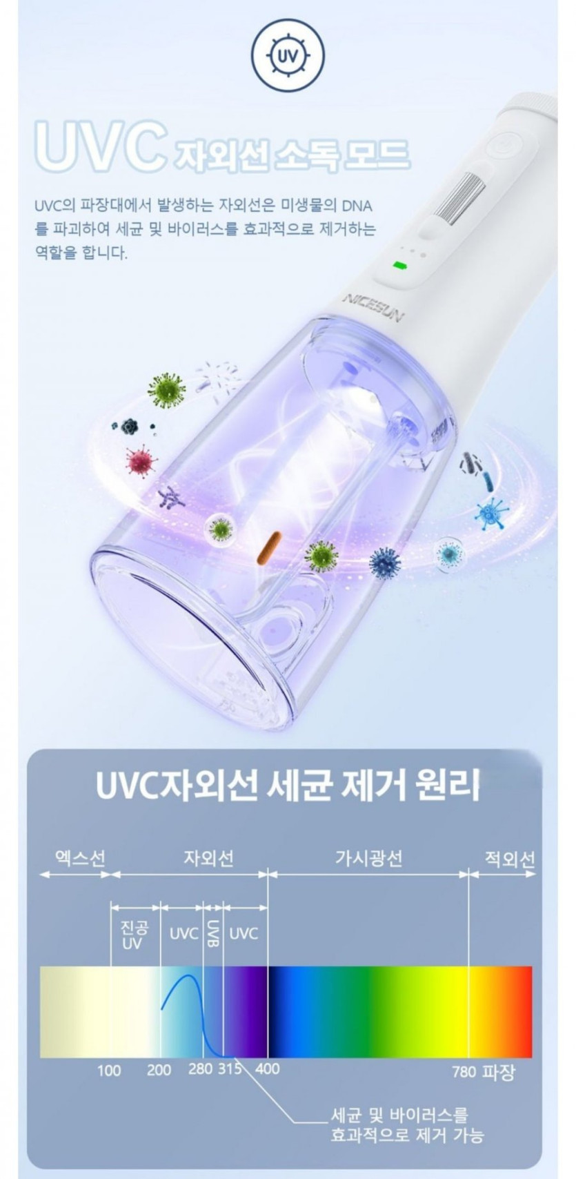 UVC 자외선 소독 기능있고 IPX7급 방수등급 입니다
