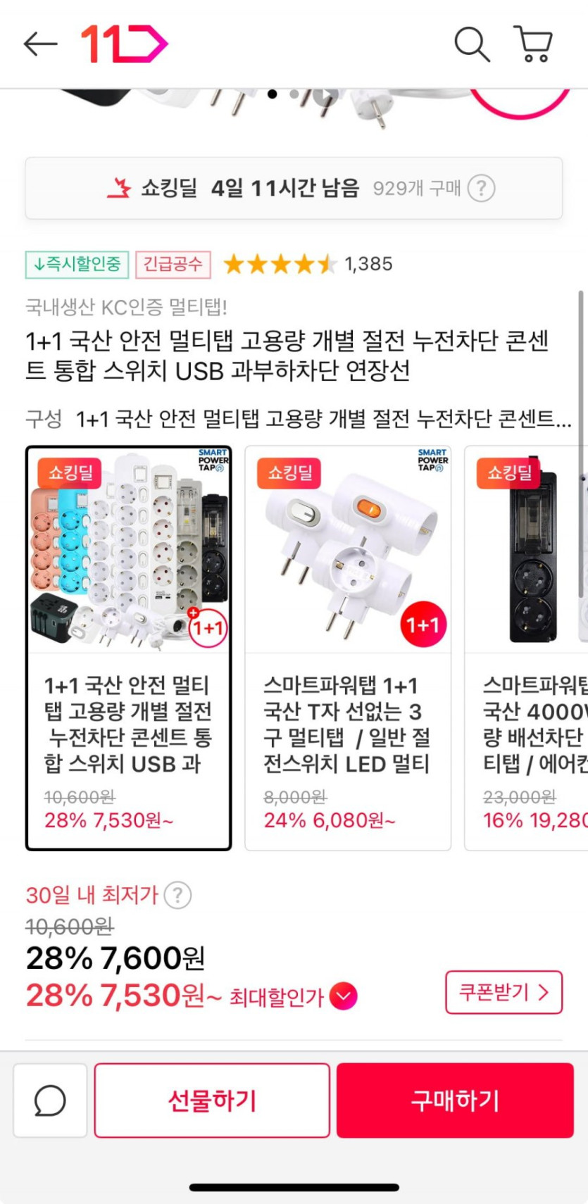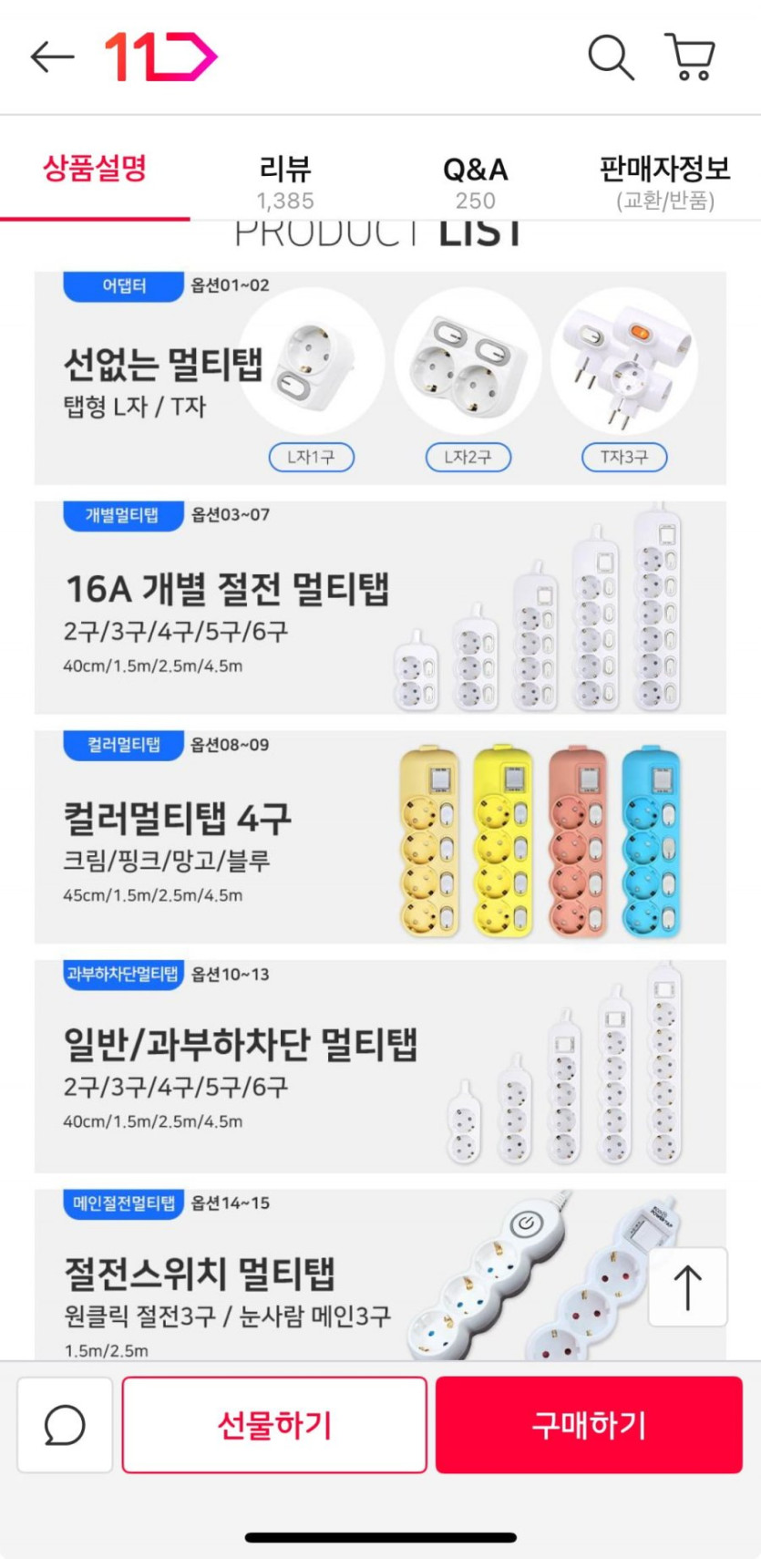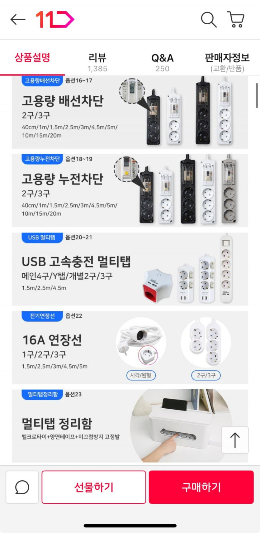고용량 누전차단 멀티탭 찾다가 11번가에