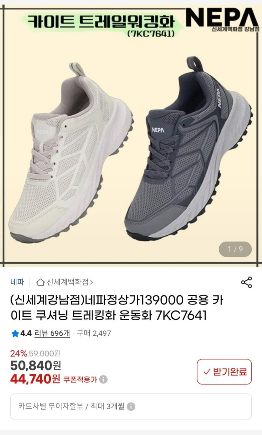 [g마켓]네파 카이트 쿠셔닝 워킹화 (44,740/무배)
