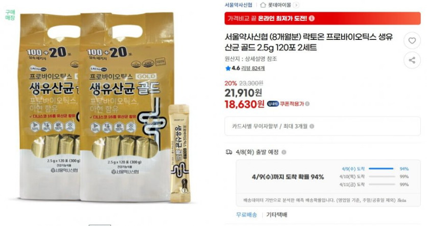 [G마켓]서울약사신협 (8개월분) 락토온 프로바이오틱스 생유산균 골드 2.5g 120포 2세트 (유클 18,630원/무료) 작성자 정보 초코 작성 작성일 2025.04.06 22:41 컨텐츠 정보 31 조회 목록 본문 유클 15% 적용 시 가격입니다. https://item.gmarket.co.kr/Item?goodscode=4038110427https://item.gmarket.co.kr/Item?goodscode=4038110427 관련자료 링크 https://item.gmarket.co.kr/Item?goodscode=4038110427 4 회 연결 http://뽐뿌 5 회 연결 이전 [G마켓]목 어깨 온열 휴대용 간편 무선 지압 마사지기 업그레이드버전(37,900원/무료) 작성일 2025.04.06 22:55 다음 [카카오]빅사이즈 남자 드로즈 속옷 (2,300원,무료) 작성일 2025.04.06 22:41 댓글 0 등록된 댓글이 없습니다. 로그인한 회원만 댓글 등록이 가능합니다. 목록