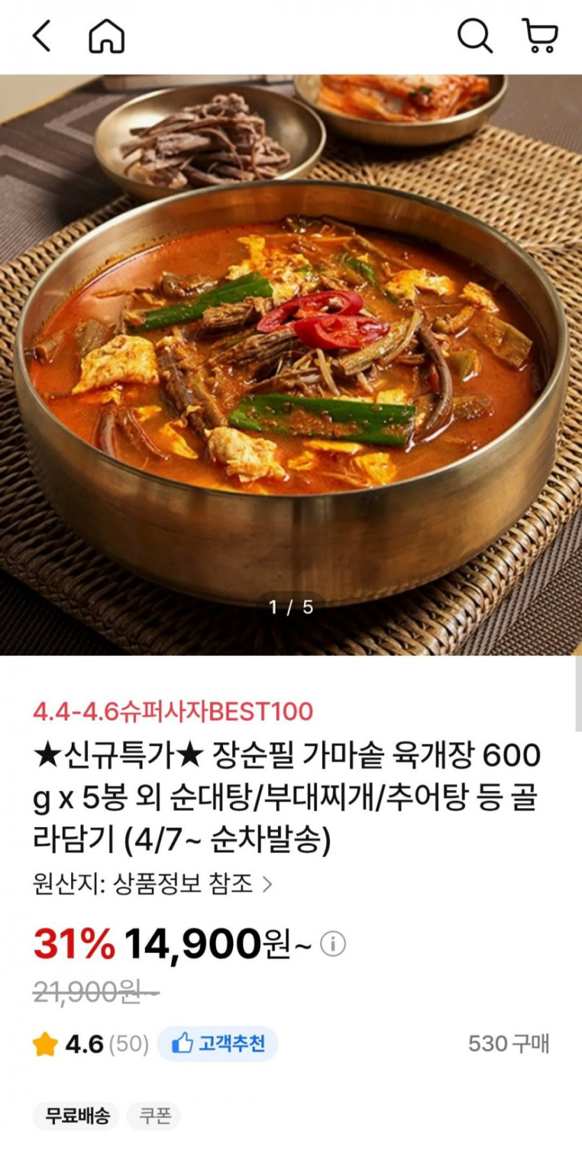 [NSMALL]장순필 가마솥 육개장 600ml 5봉 외 (14,900원/무료)