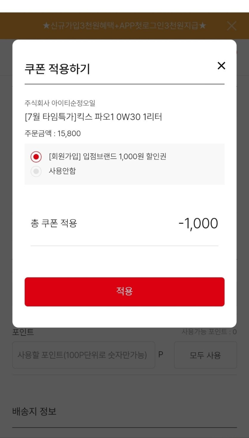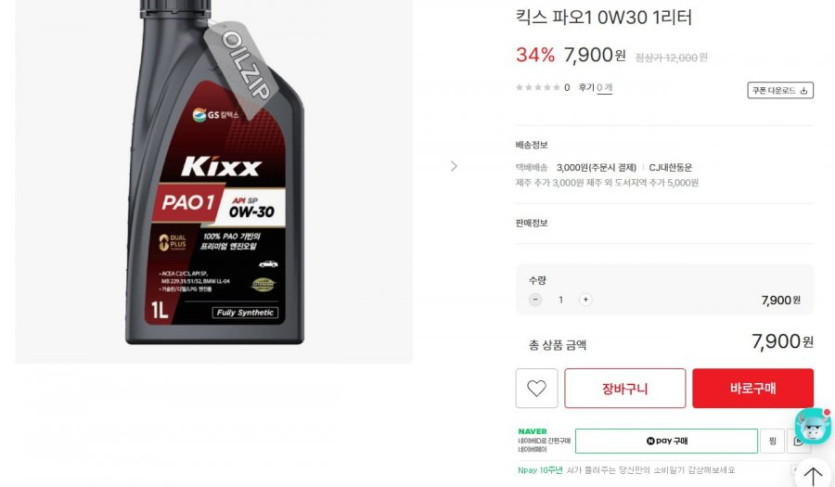 [공홈]킥스파오 1 0W30 1L(7,900원 / 3000원)