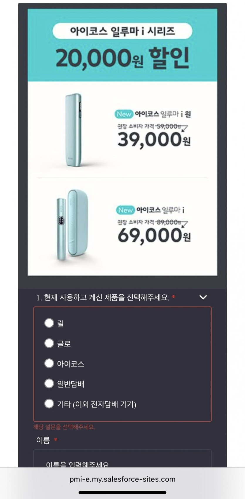 아이코스 일루마 i 원 신제품 39,000원에 CU에서 할인 행사중입니다.