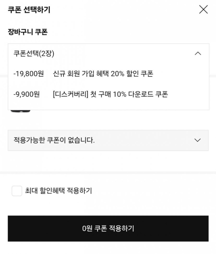 현재 첫 구매 쿠폰 주고 있어서