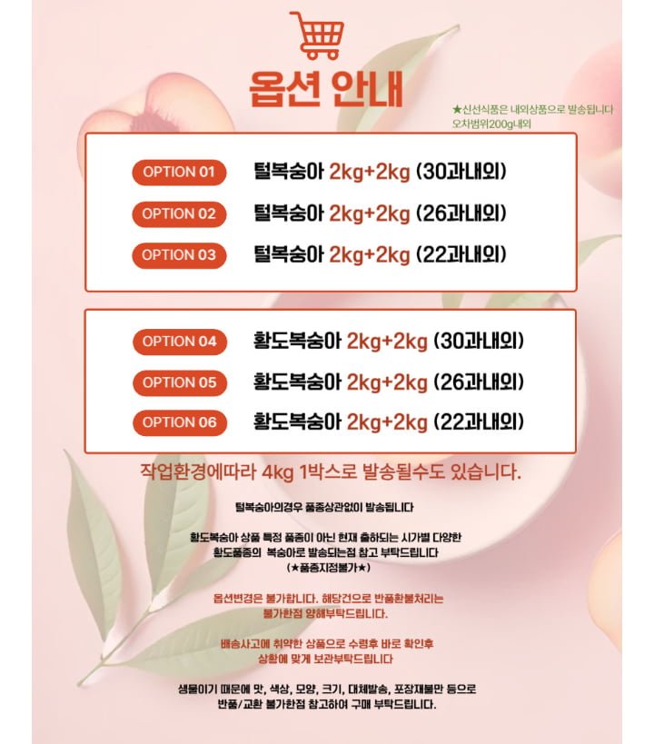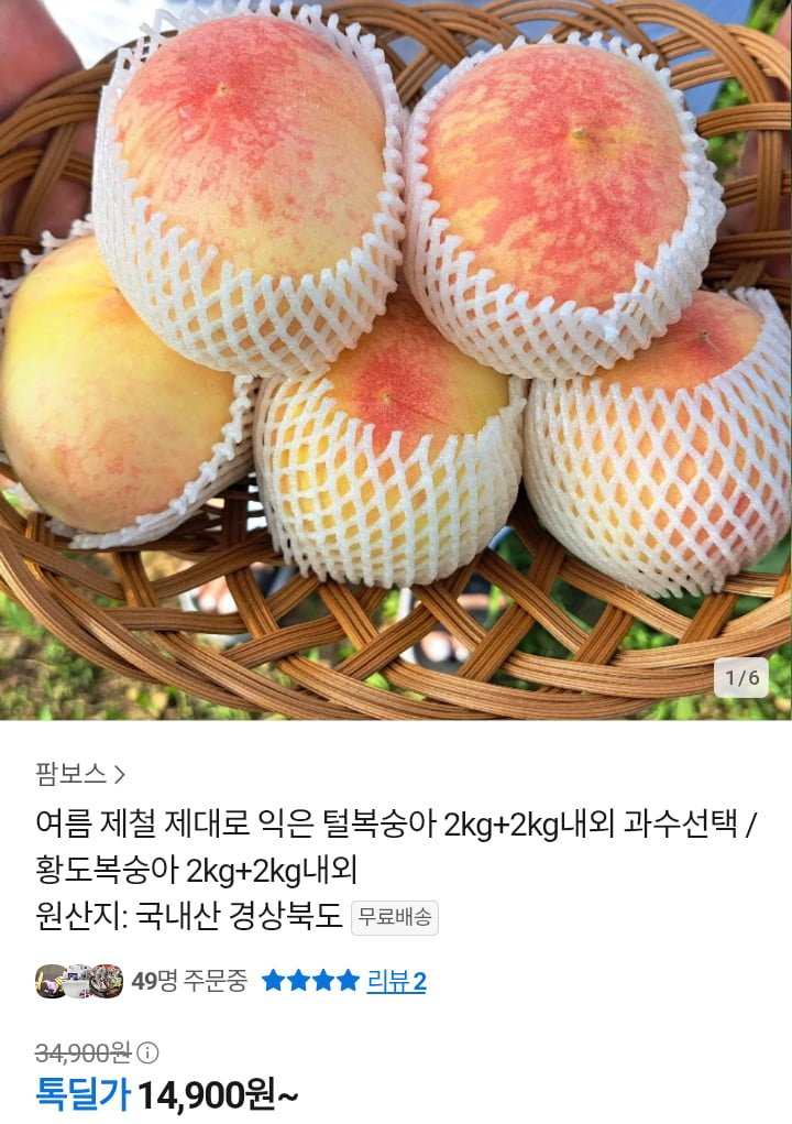 [카카오]여름 제철 털복숭아 2kg + 2kg (14,900원~/무료)