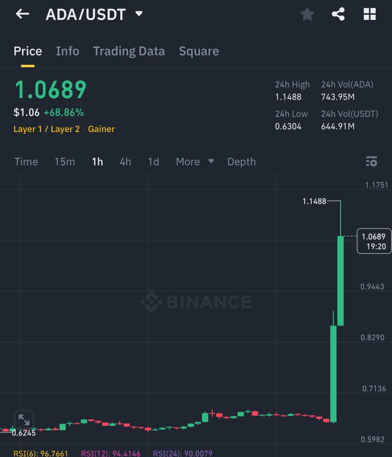 시총이 가벼운 에이다는 트윗 한방에 무려 70%나 폭등함