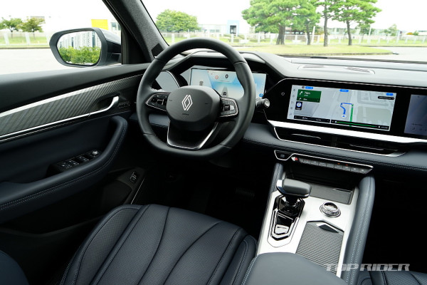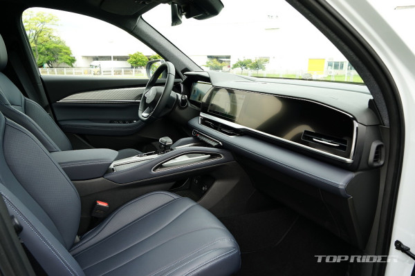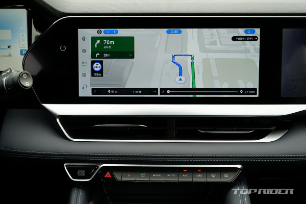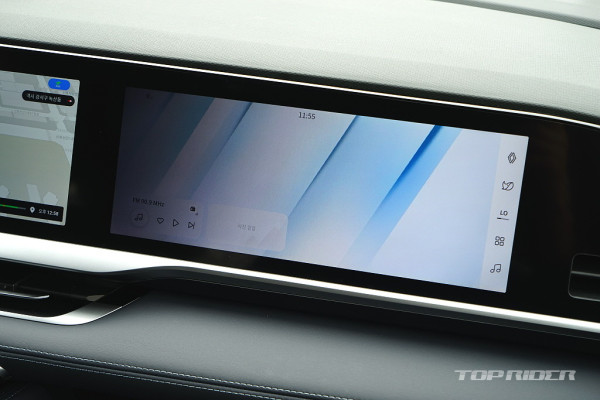 실내는 하나의 패널로 이어진 수평형 대시보드와 여기에 내장된 3개의 12.3인치 디스플레이가 분위기를 주도한다. 조수석 디스플레이는 벤츠 E클래스에서 중상위 트림에만 적용되는 옵션으로, 국산차에 적용되는 것은 이번이 처음이다. 편광 필름의 시야각은 다소 지나치다.
