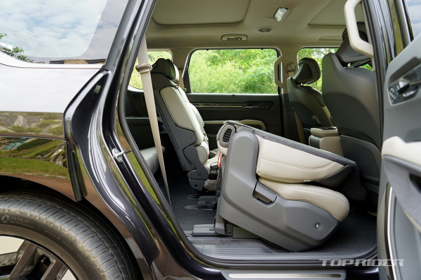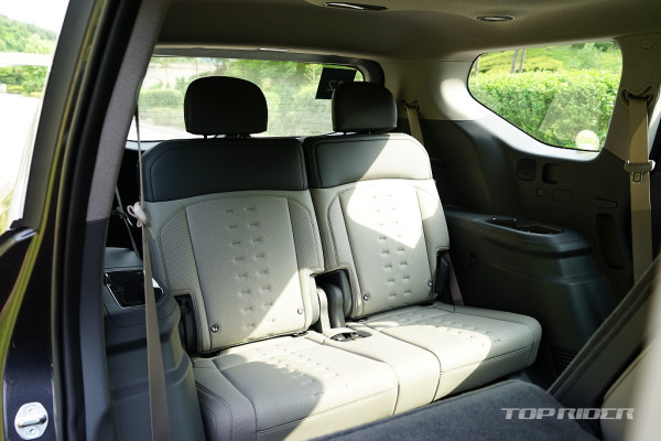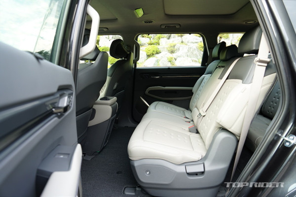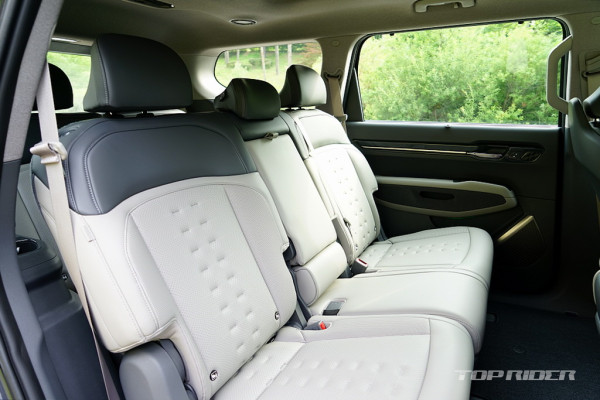 실내 공간과 적재공간은 체감상 현대차 팰리세이드에 가깝다. 3열 시트를 사용해도 트렁크공간에 여유가 있다. 비교적 낮고 편평한 실내 바닥을 통해 거주성은 오히려 좋다. 3열 진입시 공간이 다소 애매한데, 3열을 자주 사용한다면 6인승 시트 구성을 선택하는 것이 좋다.