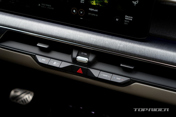 파노라믹 와이드 디스플레이 중앙에는 공조장치 조작부가 위치하는데, 주행시 스티어링 휠에 가려져 시인성이 좋지 않아 개선이 필요하다. 구독 서비스의 경우 점등같은 불필요한 부분이 아니라, 차박 모드를 별도로 만들어 차박에서 쾌적한 환경을 제공하는 것을 추천한다.