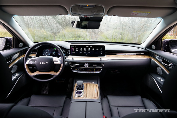실내는 수평형 대시보드와 오픈포어 우드 감각의 인레이, 얇은 베젤의 14.5인치 가로형 인포테인먼트 모니터와 7인치 전자식 계기판, 금속재질이 연상되는 각종 스위치류 등 벤츠와 BMW의 분위기가 함께 담겨있다. 실제 조작 편의성은 국산 대형차 중 가장 우수한 편이다.