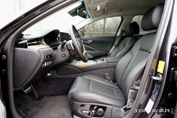 실내공간은 K9의 가장 큰 장점 중 하나로 쿠페형 실루엣을 사용하지 않은 탓에 레그룸은 물론 1열과 2열의 헤드룸이 여유롭다. 특히 2열 시트의 착좌감이 인상적인데, 전동식 리클라이닝 옵션을 선택하지 않아도 충분히 좋은 구성이다. G80 대비 2열 개방감이 좋은 편이다.
