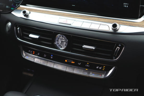 정차시 소음과 진동은 효과적으로 차단했다. 국산 대형세단의 정숙성은 수준급으로, 기아의 플래그십 모델인 K9도 뛰어난 수준이다. 윈드실드를 비롯해 1열과 2열, 리어 윈드실드까지 이중접합 차음 유리가 기본이다. 아이들링 스탑(ISG)이 적용되지 않은 점은 의외다.
