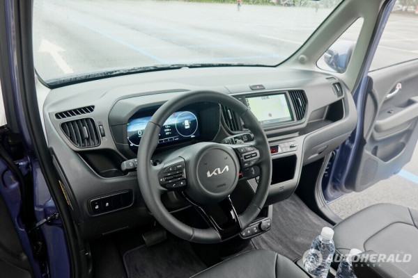 겉모습에서 차이가 나는 건 전면부다. EV 전용 가니시의 중앙에 있는 충전구 커버에 'KIA' 앰블럼이 박혀 있고 주변 베젤을 블랙 하이그로시로 고급스럽게 마감했다. EV 전용 14인치 알로이 휠도 가솔린과 다른 점이다. 실내에는 10.25인치 디지털 클러스터가 사용됐다. 비 오는 날, 비가 내리는 것을 보여주는 똑똑한 클러스터다.