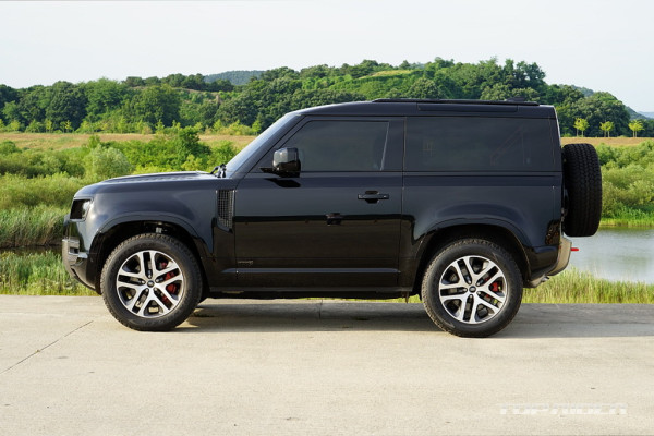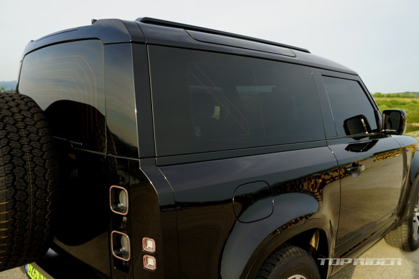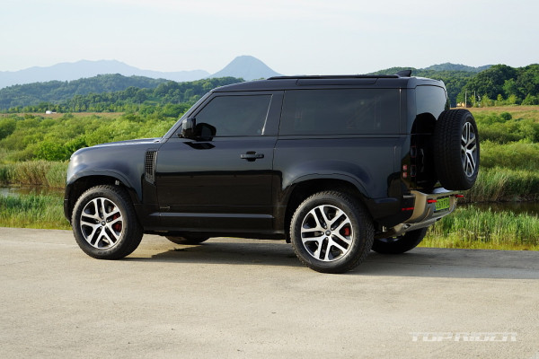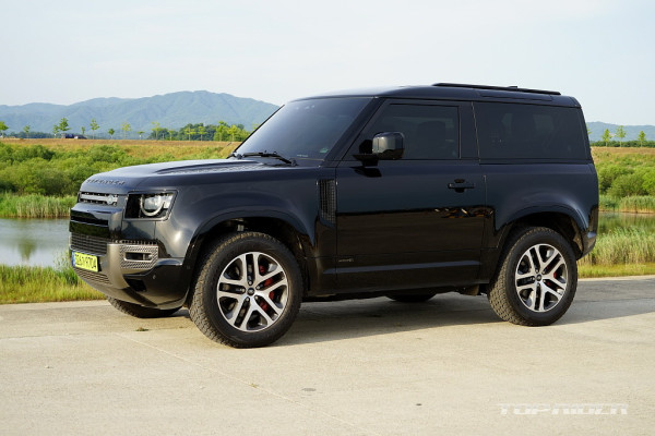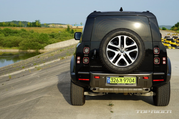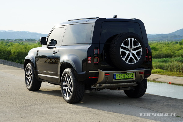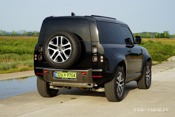 디펜더 90의 외관 디자인은 멋스럽다. 전통적인 디자인 요소를 곳곳에 배치했지만 전체적으로 면을 강조한 일체감 높은 디자인은 SUV 중에서 여전히 최고라 손꼽을 수 있다. 3도어 비율상 짧아 보이지만 차체의 전폭과 전고가 상당해 전장을 제외하면 대형 SUV에 가깝다.