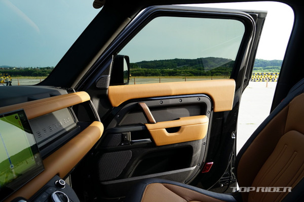 디펜더 90의 진짜 모습은 오프로드에서 확인된다. 랜드로버의 미디어 시승행사는 항상 험로 주파와 수로 통과를 넣고 있는데, 에어 서스펜션을 높이면 최저 지상고는 291mm까지 높아지고, WADE 모드에서는 수심 900mm까지 도하 상황을 카메라를 통해 운전자에게 전한다.