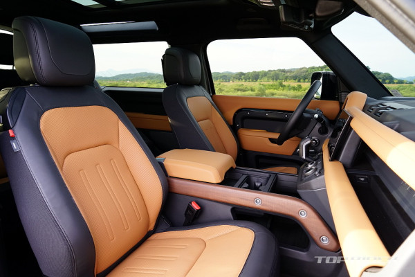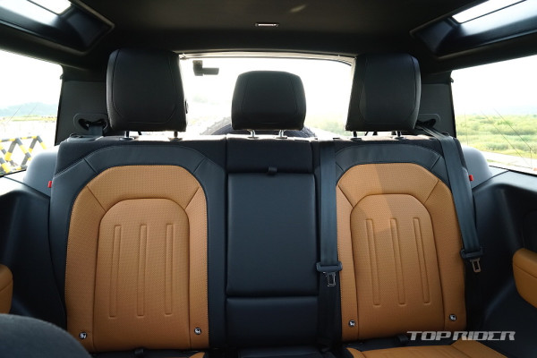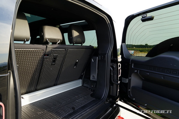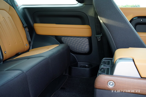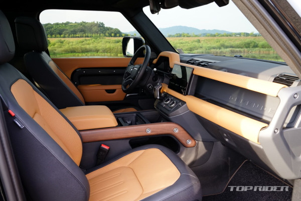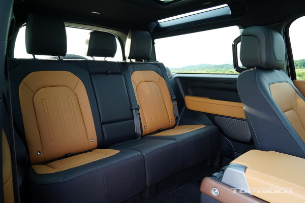 디펜더 90의 2열 공간은 무척 인상적이다. 일반적으로 생각되는 보조석 개념이 아닌 거실의 소파처럼 넓고 커다란 구성에 레그룸과 헤드룸도 여유롭다. 또한 루프 측면에 위치한 길다란 쪽창을 통해서 추가 개방감도 제공한다. 3인 가족의 패밀리카로 고려할만한 구성이다.