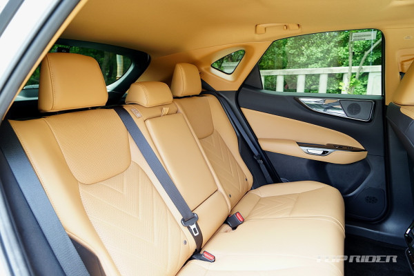 차체 크기 대비 넓은 실내공간은 NX의 강점 중 하나다. 특히 2열 시트의 착좌감이 좋은 편으로 2단계 리클라이닝을 제공한다. 헤이즐(Hazel) 컬러의 인테리어는 스포츠카 렉서스 LC를 연상케 한다. 꼼꼼하고 정교한 버튼류의 소재와 디자인은 렉서스가 잘하는 부분이다.