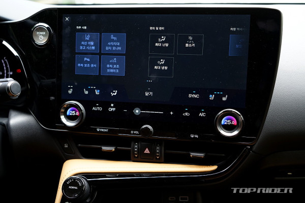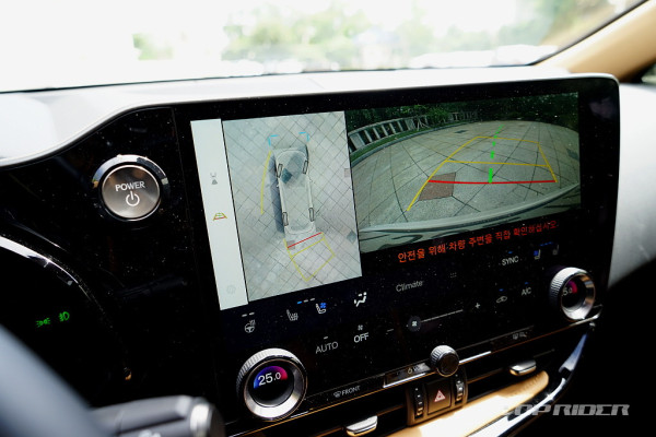 파노라믹 뷰 모니터는 또 다른 눈에 띄는 장비다. 단순히 차량의 360도 상황을 보여주는 것을 넘어서, 차체 하부와 타이어 주변까지 보여주는 '시스루 뷰'는 주차는 물론, 험로 주행에서도 노면 상황을 확인할 수 있다. 코너링 뷰 사용시 운전자의 사각지대는 제로에 가깝다.