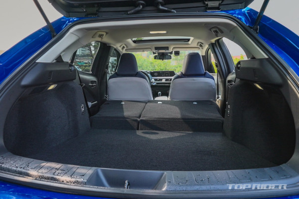 차체 바닥에 배터리팩이 더해지면서 실내 바닥이 하이브리드 모델 대비 살짝 올라왔는데, 시각적으로나 체감상 공간의 차이를 알아채기는 어렵다. 크로스오버 차체의 장점이기도 하다. 트렁크 공간은 오히려 41리터 증가했는데, 바닥 패널 아래에는 추가 적재 공간이 있다.