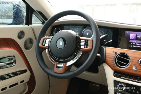 스펙터 스티어링 휠 기어비는 여유롭고 가볍다. 가벼운 스티어링 휠도 롤스로이스 헤리티지 중 하나다. 스티어링 휠 직결감은 BMW 맛이 섞여 있다. 스펙터 기본인 후륜 조향은 회전반경을 큰 폭으로 줄여줘 도심 주행과 주차에 부담이 없다. 고속에서는 사선으로 움직인다.
